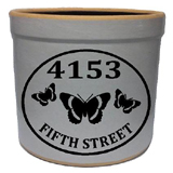 The butterfly personalized crock is deeply etched and then hand painted. It is available in burgundy, navy, green, red and black.