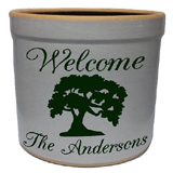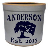 The Oak tree personalized crock is deeply etched and then hand painted. It is available in burgundy, navy, green, red and black.